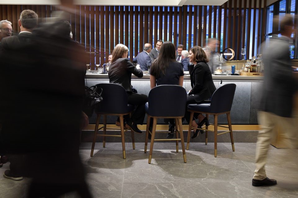 Patrons crowd the lobby bar at the Omni Boston Hotel at the Seaport on Sept. 17, 2022.